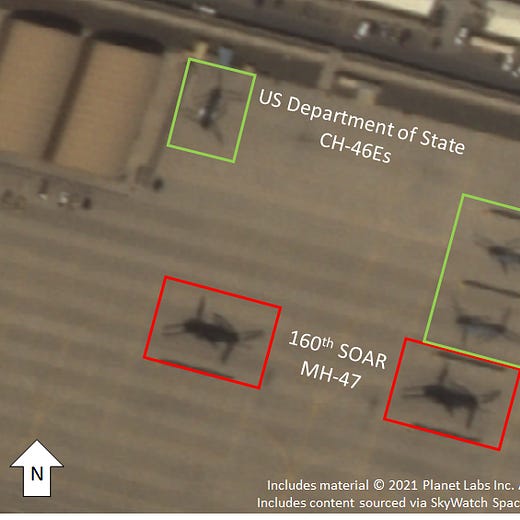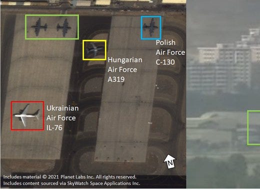 On 18 Aug 2021, 76699 departed Kyiv Boryspil Airport in Ukraine for Afghanistan. On 19 Aug, 76699 was spotted on satellite imagery at Hamid Karzai Airport in Kabul, Afghanistan. 76699 can be seen in the far left of picture 1 of Amelia Smith’s tweet shown below, around 34.567990° 69.216469° on the map. A picture published by the Ukraine Ministry of Defense, again shown below, shows 76699 at the same location in Kabul, facing east.