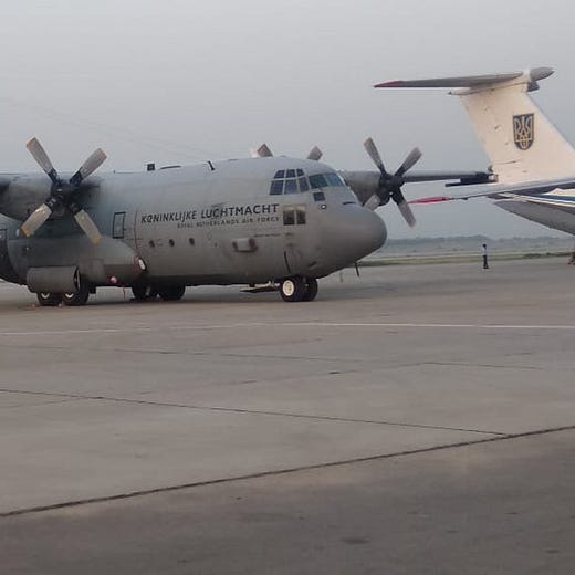 76699 in Islamabad, Pakistan, parked next to a Royal Netherlands Air Force C-130H: